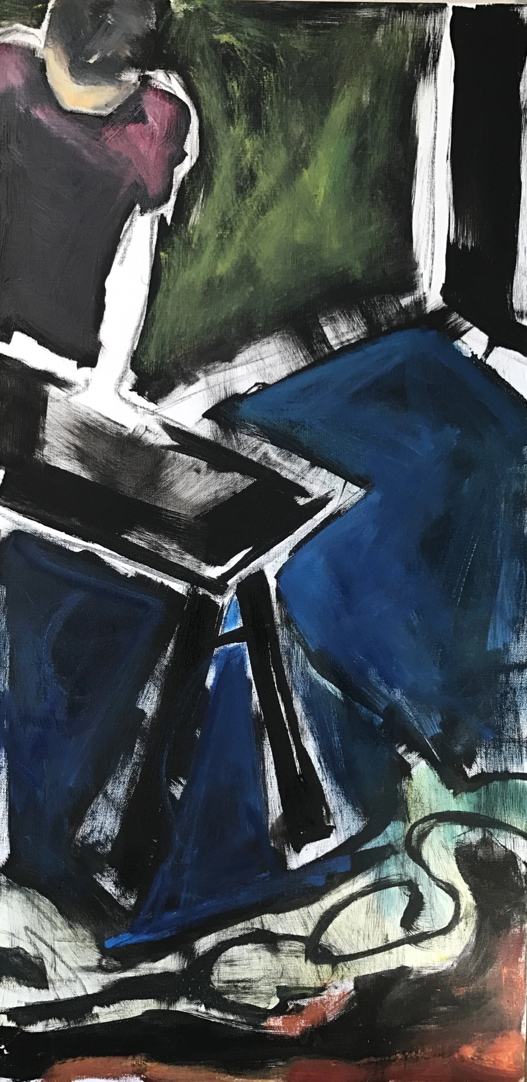 Working, 36 x 18, oil on canvas, $1,800.